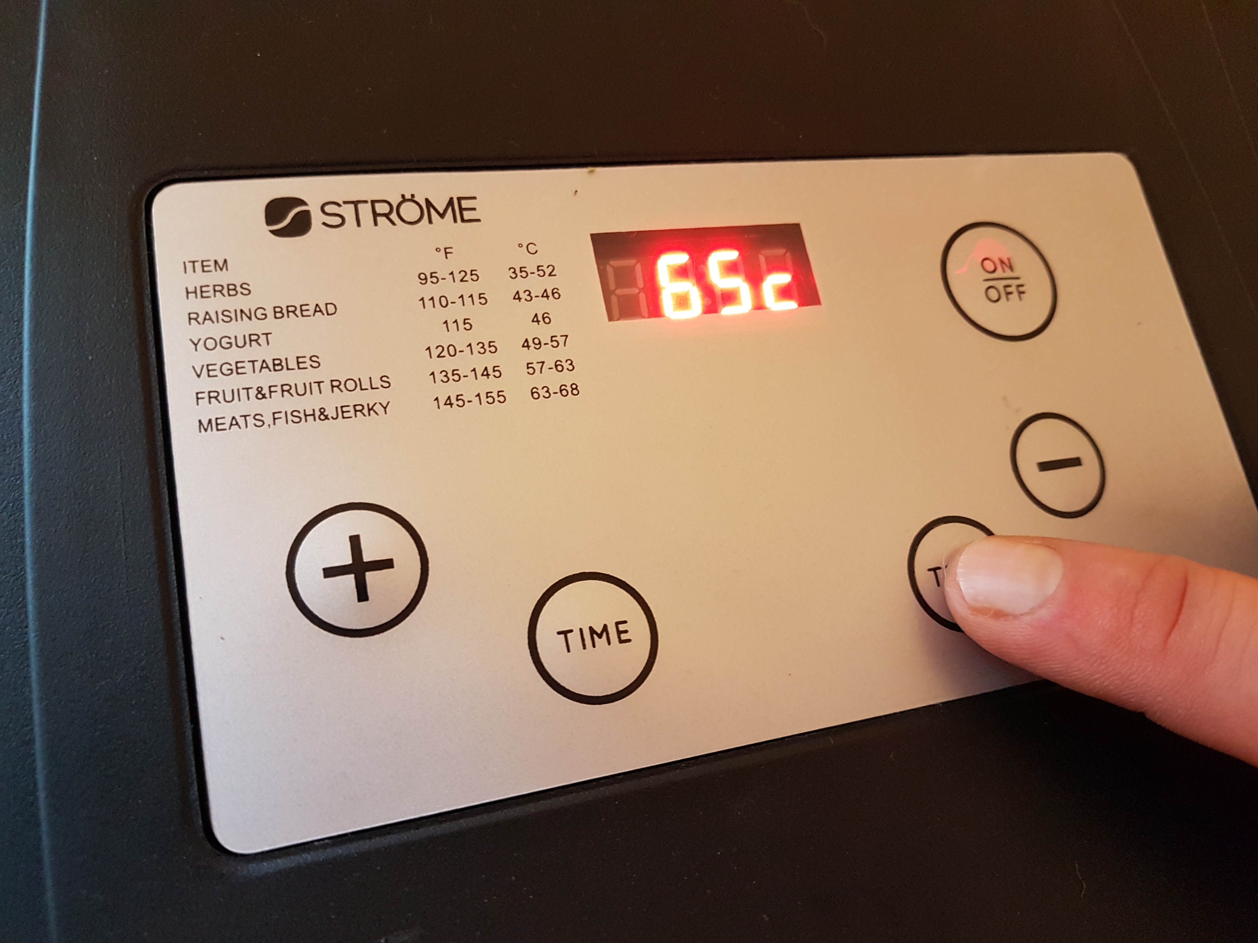 Vinkkinä; Kuivuri on nyt huimassa alennuksessa Verkkokaupassa, tarjous voimassa 31.10.2017 asti. (Ströme professional food dehydrator, normaalihinta 199,90 nyt 69,90). Lämpötilaa ja aikaa voi säätää, joten aika monikäyttöinen vempele näyttäisi olevan.