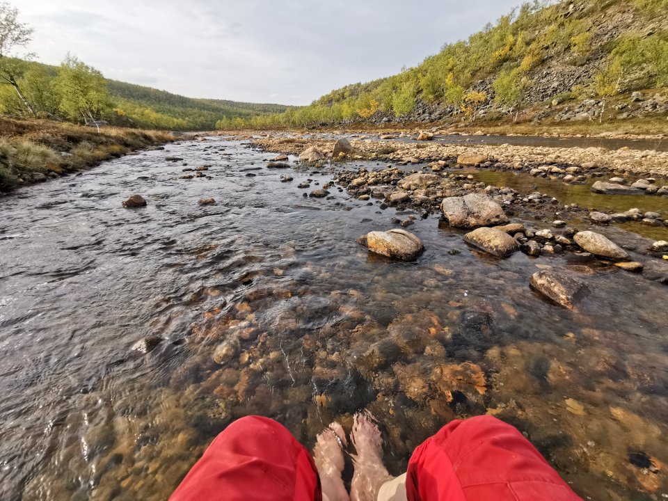 Olimme omassa erämaakuplassa, koko naislauma. Kelit helli; elokuun viimeisinä päivinä uskalsi heittää vaatteet joenpenkalle ja pulahtaa viileään veteen.