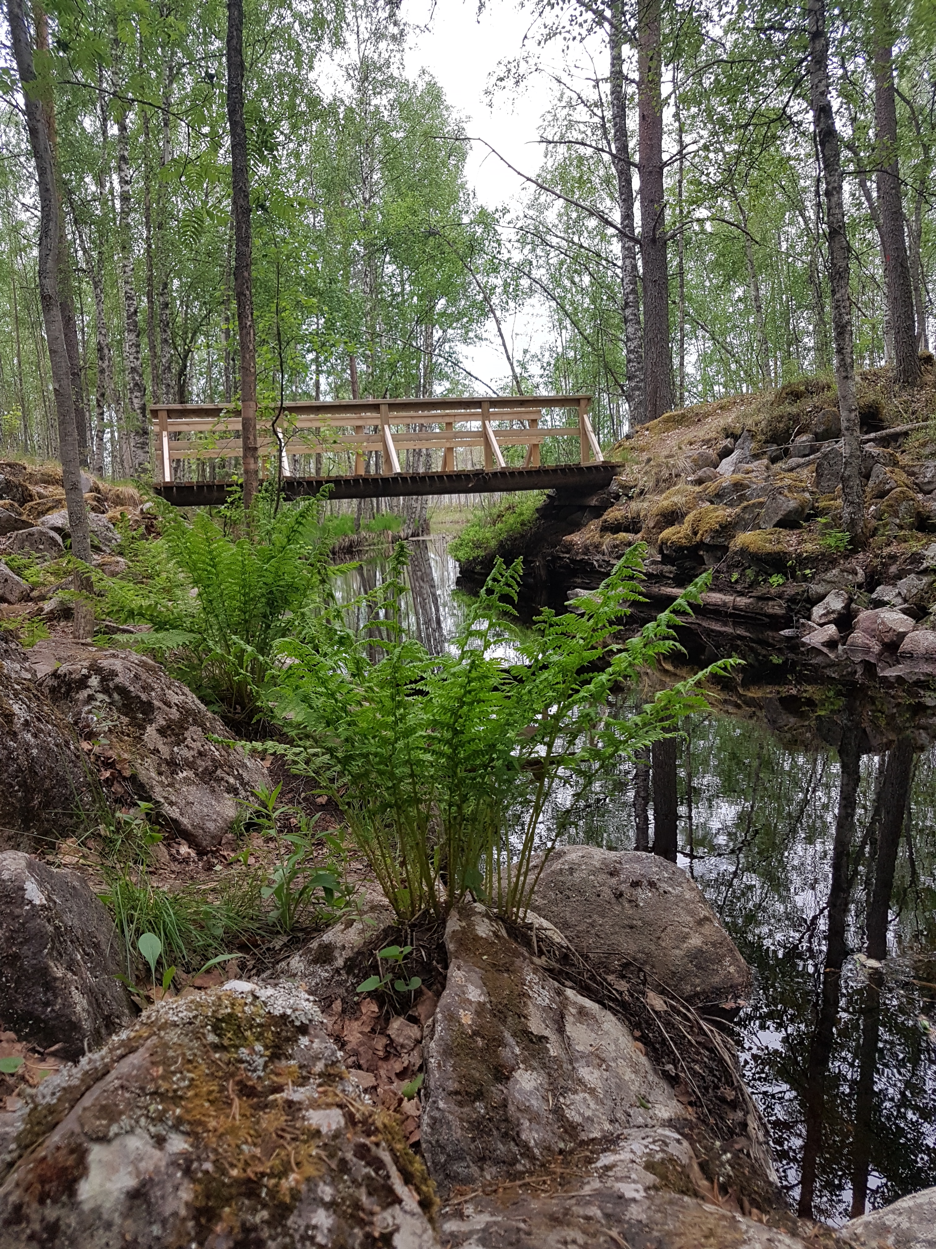 Hyvä lounaspaikka on Nielujärvellä, missä on laavu, tulipaikka ja huussi. Laavulle mennään ylittämällä Nielujoki näyttävää, mutta aika heikkokuntoista siltaa pitkin. Osa laudoista on lahonnut ja sillalla kannattaakin kävellä keskellä ja pitää katse jaloissa.