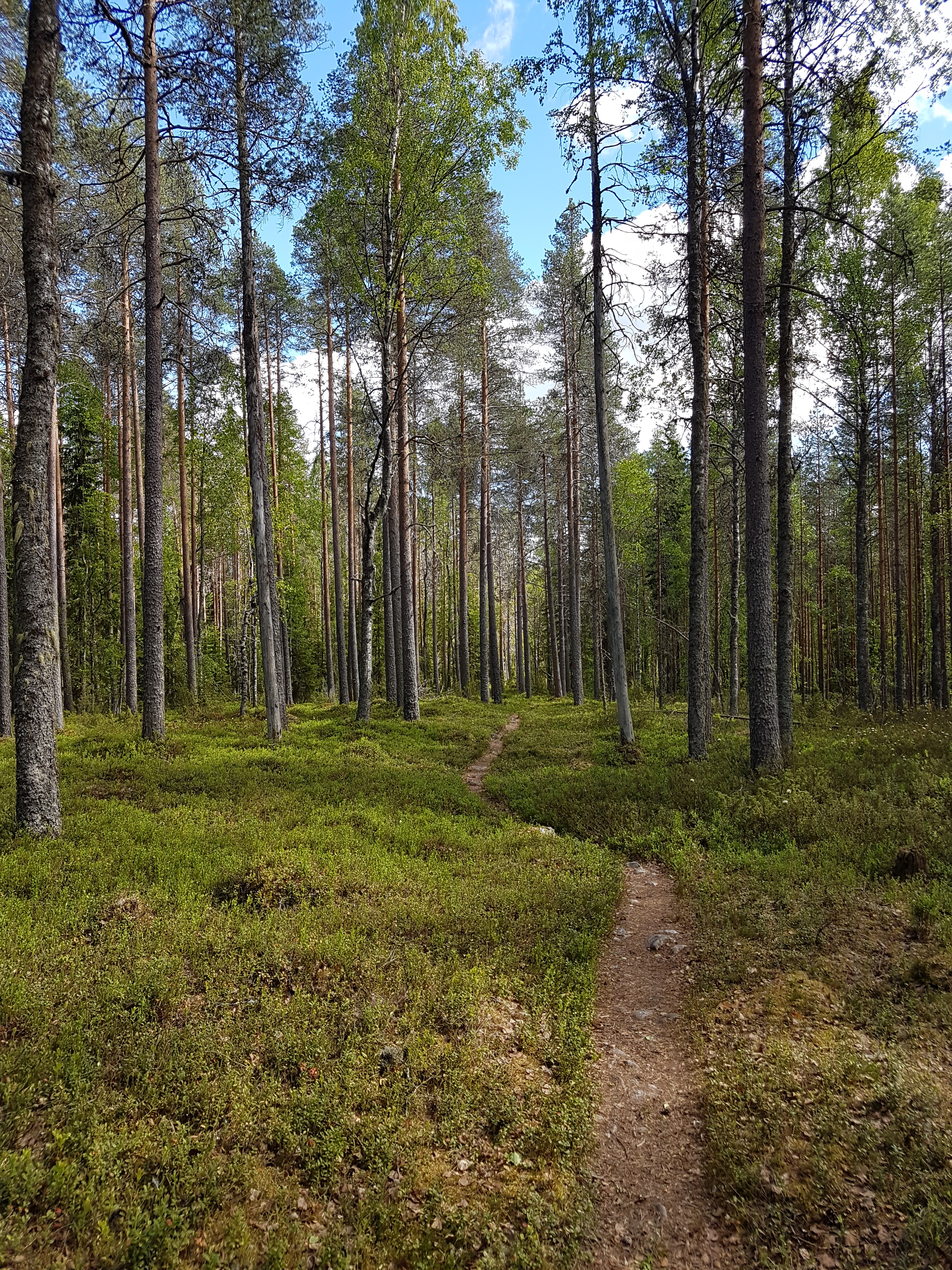 Hirvaan kierros on hieno reitti, jossa on monenlaista metsää. On ikimetsiä kilpikaarnamäntyineen, koivikoita, sekametsiä, talousmetsää ja korpikuusikkoa. Suoluonnon ihailijoille reitillä riittää herkkupaloja jokaisella päiväetapilla. Salamajärven alueella asuu metsäpeuroja ja olen niitä kahdella reissulla nähnytkin. Olen myös nähnyt ahman reittiä kulkiessani. Alkukesällä soilla viihtyy erilaiset korennot ja perhoset.